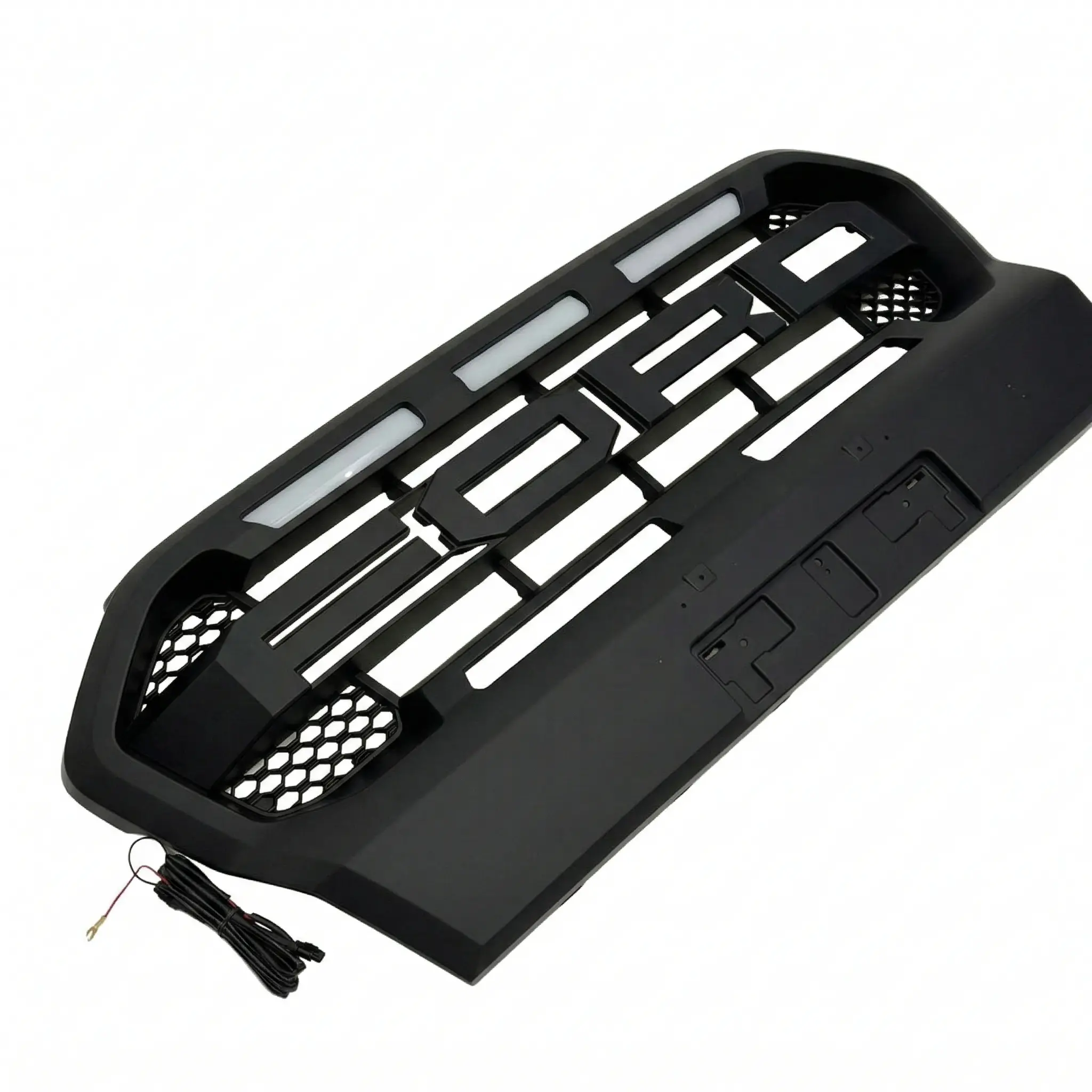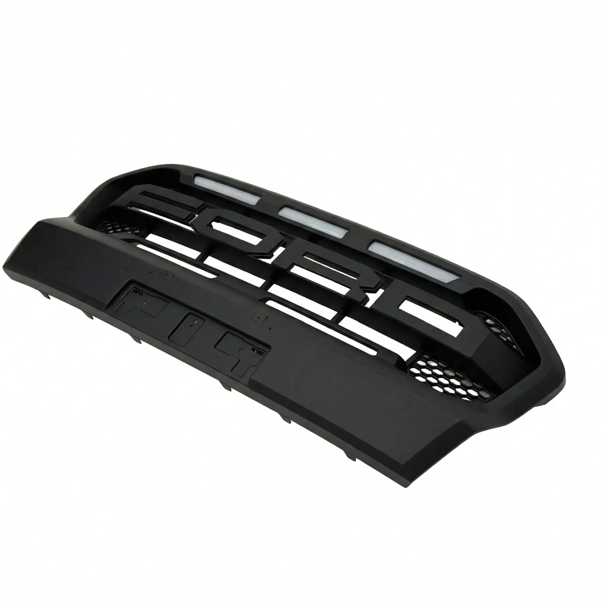Aggressive matte black front grille with integrated white LED lighting for Ford Ranger T8.